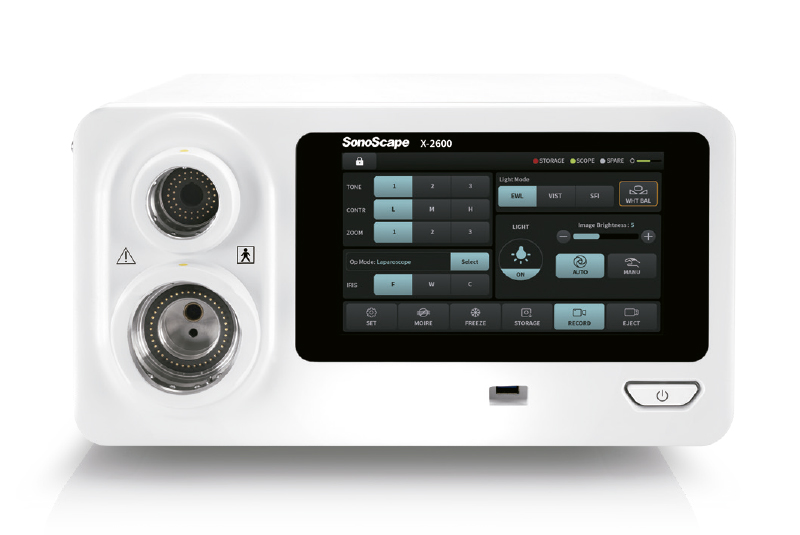 Sistema de Endoscopia compacto HD X-2600El X-2600 de SonoScape es un sistema de endoscopia compacto de Alta Definición compatible con Endoscopios Flexibles de la serie X20, Rígidos y de Fibra. Dispone de fuente de luz de 2 LED y tecnología SFI y VIST. Es capaz de identificar automáticamente el tipo de endoscopio y generar la interfaz correspondiente.